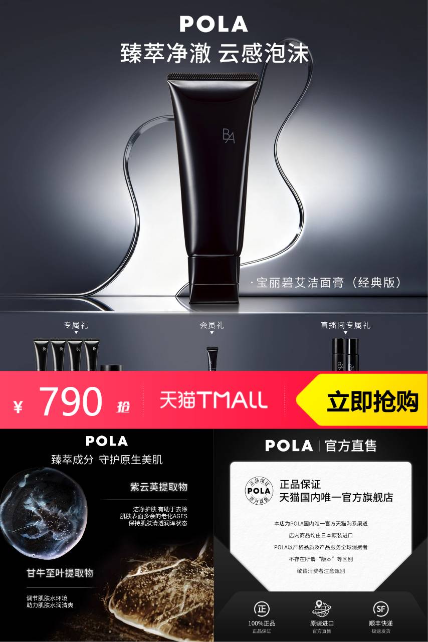 POLA宝丽碧艾洁面膏洗面奶100g,净澈护肤 多效合,细腻毛孔,沁透保湿~