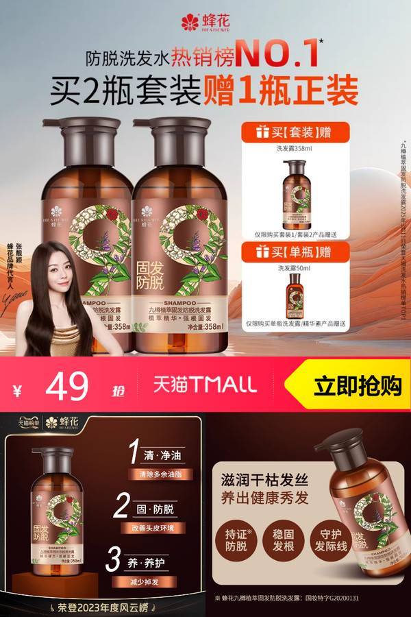 【原价78.5元,官方立减19.5元,10元券,淘金币抵扣3.07元, 到手45.93元;买单瓶赠洗发露50ml,买套装赠送358ml。】蜂花防脱洗发水套装,适合各种发质,无硅油,生姜提取物,深层滋养,强健发根,柔顺健康~全家可用半年了!