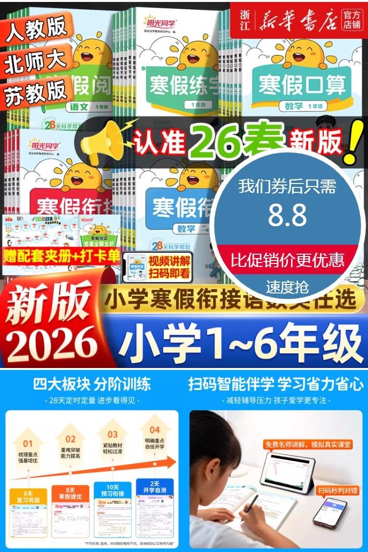 【赠配套夹册+打卡单】阳光同学寒假衔接作业,新增数学思维+文言文专项天天练,名师全程伴学,自学无压力,辅导更轻松,寒假28天高效衔接,开学自信领跑!专为小学生设计的寒假学习方案,万千家长的选择!