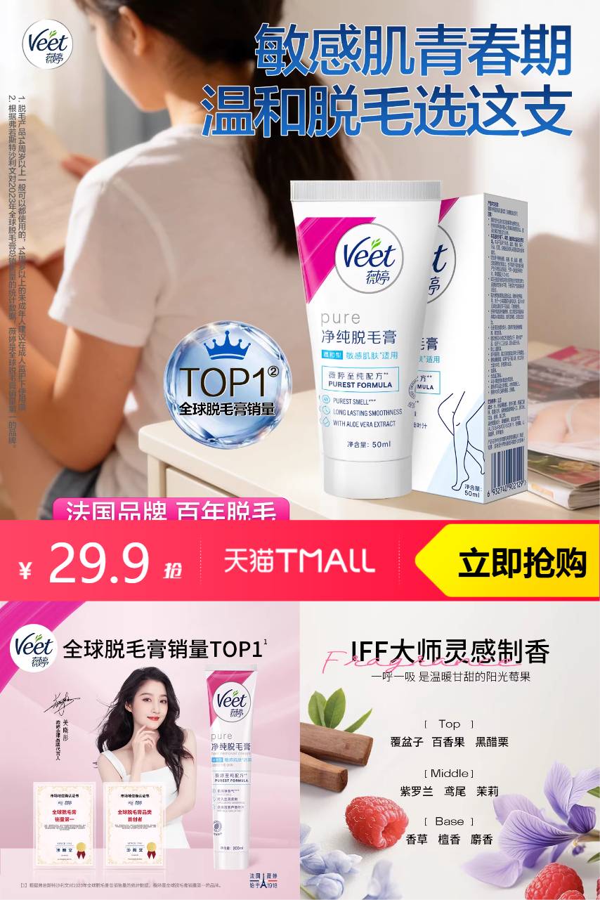 【叠加消费劵到手26.3】薇婷温和脱毛膏,轻松脱净腋下毛发,温和不刺激,不留黑点、不扎手,操作简单,几分钟拥有光滑肌肤,学生党、新手都能用。