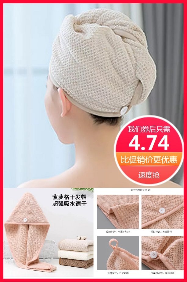 【立减1.06元,撸签到+淘金币,到手低至3元】加厚干发帽,吸水性惊艳,全方位轻松包裹,细腻柔软不掉毛,绿色环保无异味,舒适面料,经久耐用,拒绝湿哒哒!呵护发质,佩戴方便,洗漱常备!