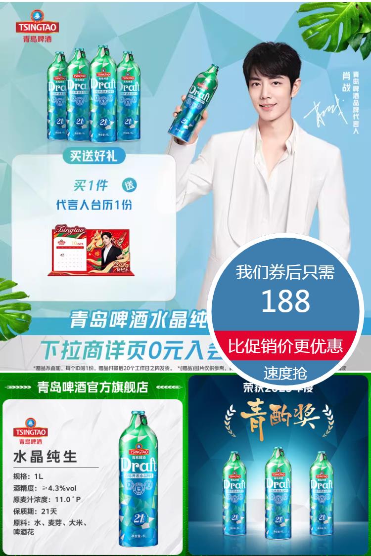 【下单送肖战台历】水晶纯生鲜活21天,11度黄金配比,口感清爽麦香醇厚~4桶豪装聚会无忧,冰镇更带感!烧烤趴、看球赛、家庭聚,举杯畅享透心凉!囤货趁现在,一口入魂爽翻天!