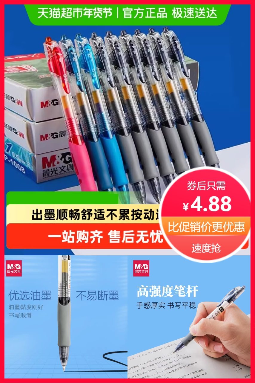 晨光黑色红色墨蓝碳素按动笔,经典按动设计,高强度笔杆,手感厚实,书写平稳,优选油墨,不易断墨,书写顺滑,子弹头笔尖,耐磨耐用。
