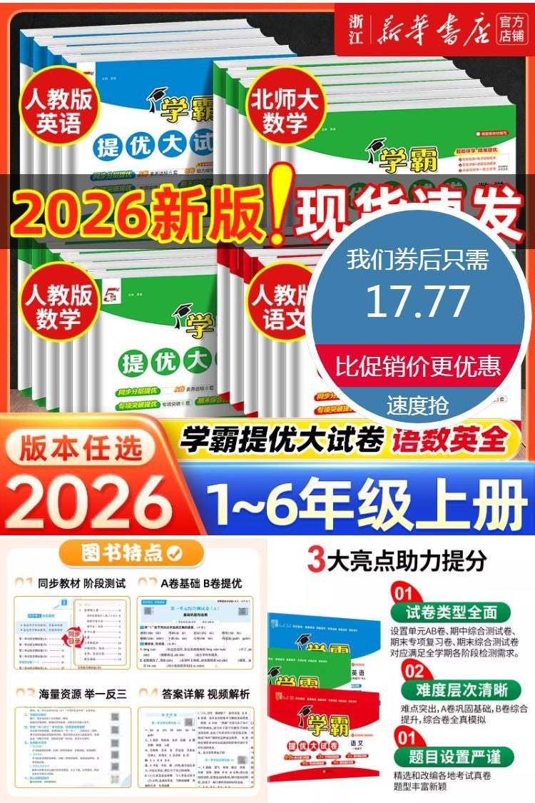 【新华书店正版】学霸提优大试卷,同步教材,理念新颖,巩固提优,思维拓展,优质纸张,大字护眼,孩子不会的题,家长不会辅导的题,图书作者一对一讲解,学霸提优大试卷,助你成就学霸!