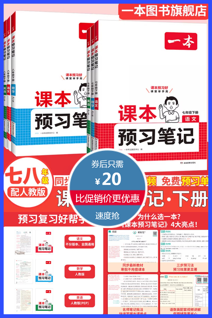 送三步预习单!一本七八年级下册课本预习笔记,7-8年级下册,课本预习笔记,语文、数学、英语任选,同步课本内容,名师笔记批注,440节音视频,180套期中期末卷,课后习题全解,寒假每天3件事,领跑新学期!