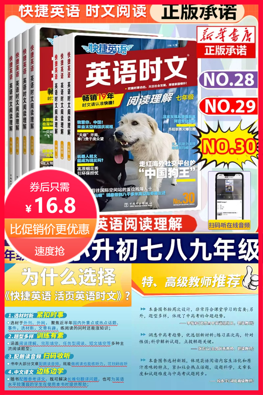 30/29期新版活页快捷时文阅读英语,七八九年级任选,为初中生量身打造的阅读理解,炫彩新颖,时效性强,实用性广,时文简讯,高考听力主播播报,阅读核心词汇梳理!!