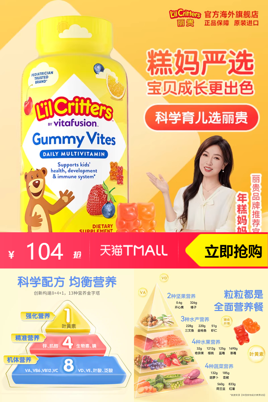 【官方立减17元,店铺会员优惠3元,淘金币抵扣4.23元,到手价96.77元。】丽贵l小熊,宝宝成长好帮手,挑食宝宝也爱,丽贵l小熊来帮忙!D钙D3,助力宝宝骨骼强壮!