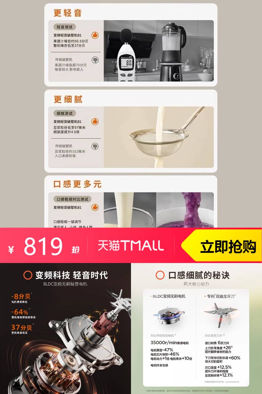 【有pz;官方补贴20元+88vip+淘金币抵31.98+消费券+国补到手567】九阳变频轻音破壁机0涂层家用豆浆机,口感粗细可调,0涂层更健康,更高效的获取更有价值的营养~