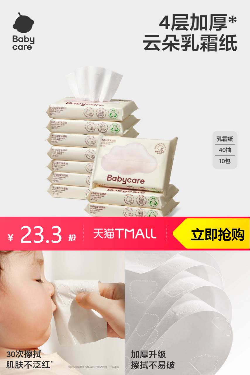 【88立减1.6元+3.82淘金币26.48,叠加消费劵到手23.3!】babycare云柔巾40抽*10包,无敏安全配方专为婴童研制,原生木浆天然无污染从源头开始守护肌肤~