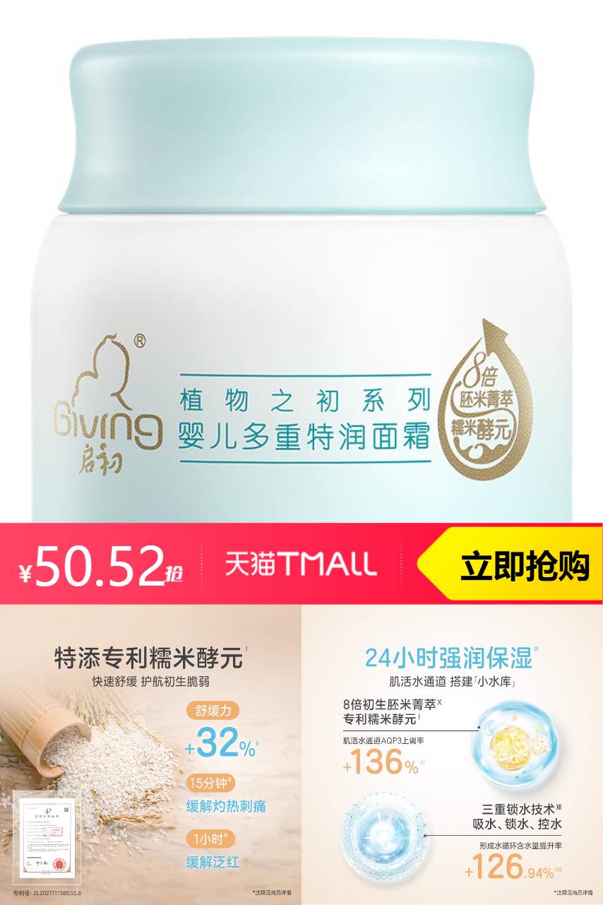【赠特润高保湿面箱20Gx2;加赠 冻干泡泡巾一片 *3】8倍胚米精华,加倍柔润,补水保湿,质地轻薄好推开,没有粘腻感,呵护宝宝娇嫩肌肤,宝妈快快安排吧!!