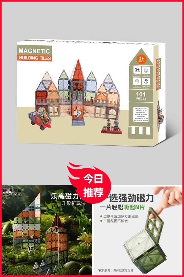 首单到手约124元!儿童益智磁力片来啦!101片大容量,彩窗设计颜值高,强磁吸附不塌,造型百变,开发智力,安全材质,给孩子一个充满创意的快乐童年~