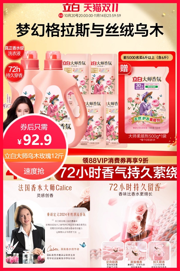 前3000名买8斤以上送大师柔顺剂500g*1袋,拍12斤选项券10元+官方立减19元+淘金币省1.21元+回购礼金10元+店铺限时红包3元+88vip省4.65元后约74.04元,【4斤装:1kg*1瓶】,拍2瓶装送大师香氛柔顺剂1kg*1袋,立白大师香氛乌木玫瑰洗衣液,留香72小时,纳米护色科技,炫彩护色,衣服亮丽如新,天然酵素,深层洁净,柔软养护,护衣更护手~