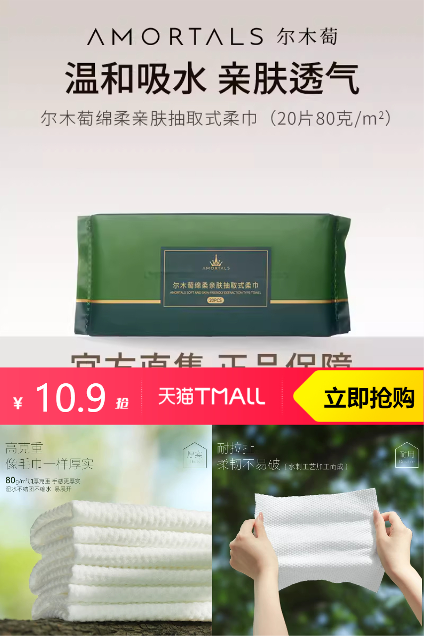 【淘金币抵扣1.06,到手9.84元】尔木萄一次性洗脸巾不易掉絮干湿两用抽取式,洁面巾便携装A