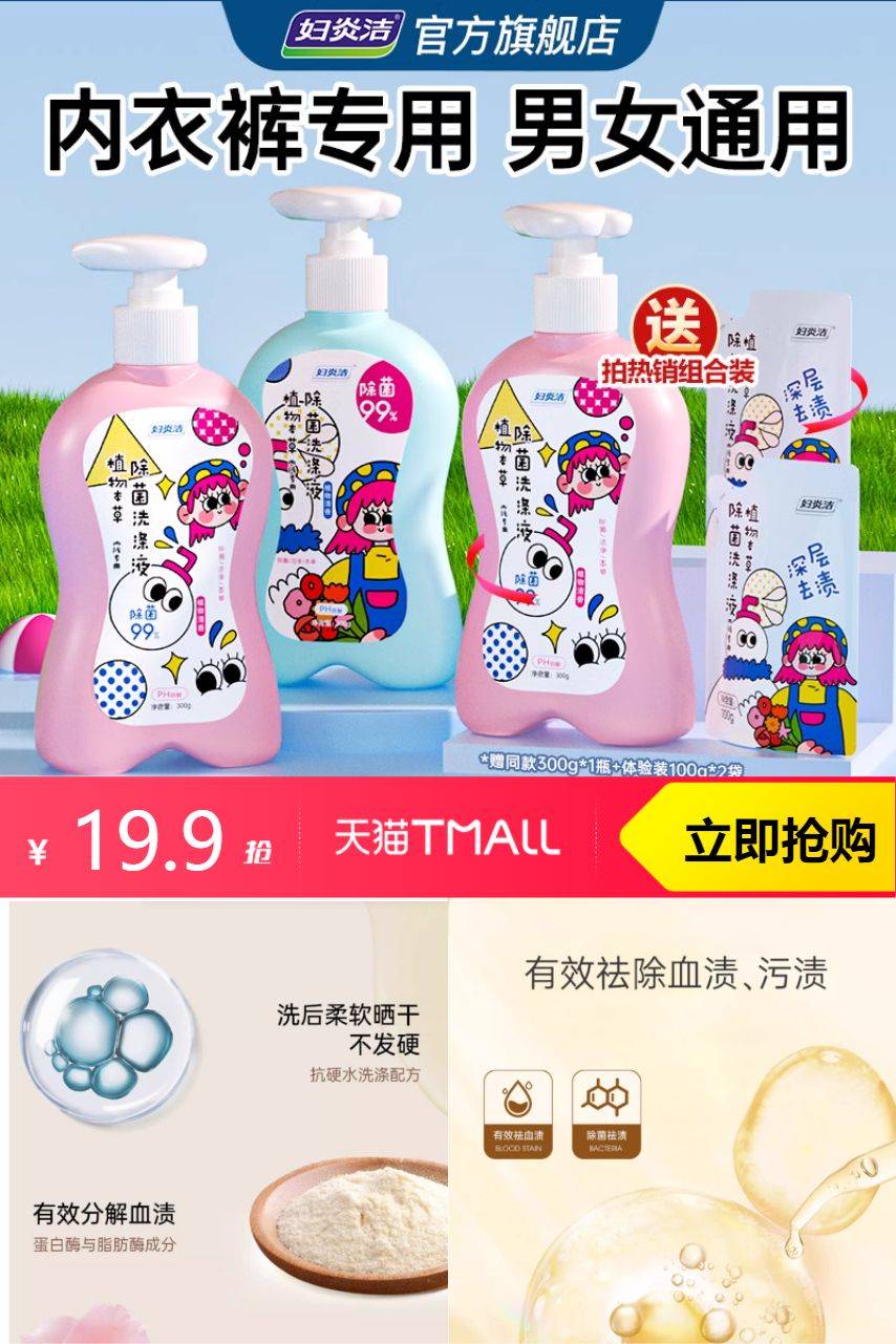 ⭕妇炎洁内裤抑菌洗涤液300g+2袋100