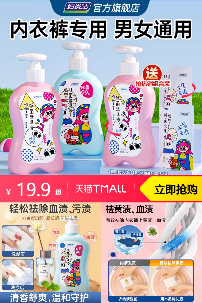 【39.9-券20-淘金币2,38-88vip95折1=16.52元。】独特抑菌技术,能够有效对抗各种细菌,呵护您的私密健康。