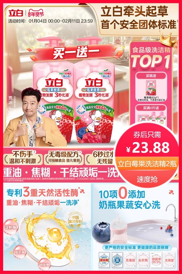 拍4件选项,买就送同款80g*2袋,官方立减9.1元+下拉详情淘金币抵扣1.02元+88vip省1.25元后约22.63元,单瓶只需11.3元,清新莓果香,去腥无残留,洁净配方,酵素因子3秒去油,10项0添加,奶瓶果蔬安心洗,含维e护肤精华,水润不伤手!