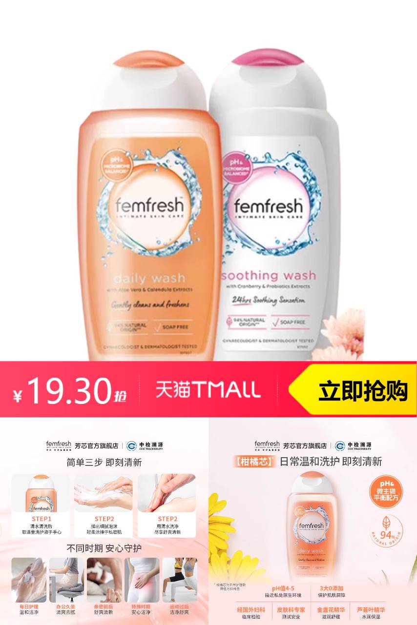 【立减2.2+淘金币2.62元+首单立减0.6到手16.48元】英国femfresh芳芯洗护私处洗护液,即刻舒适长效清新~