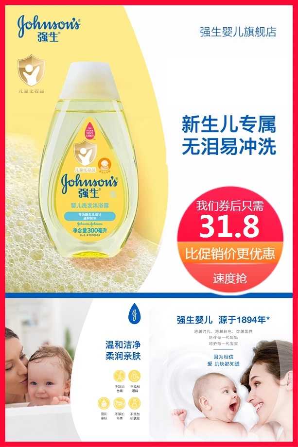 【立减5.2元】不辣眼放心拍!强生官旗!无泪弱酸配方,呵护宝宝娇嫩头皮,富含小麦胚芽精华,天然蜂蜜,细致养护,修护受损头发,让宝宝爱上洗头发!