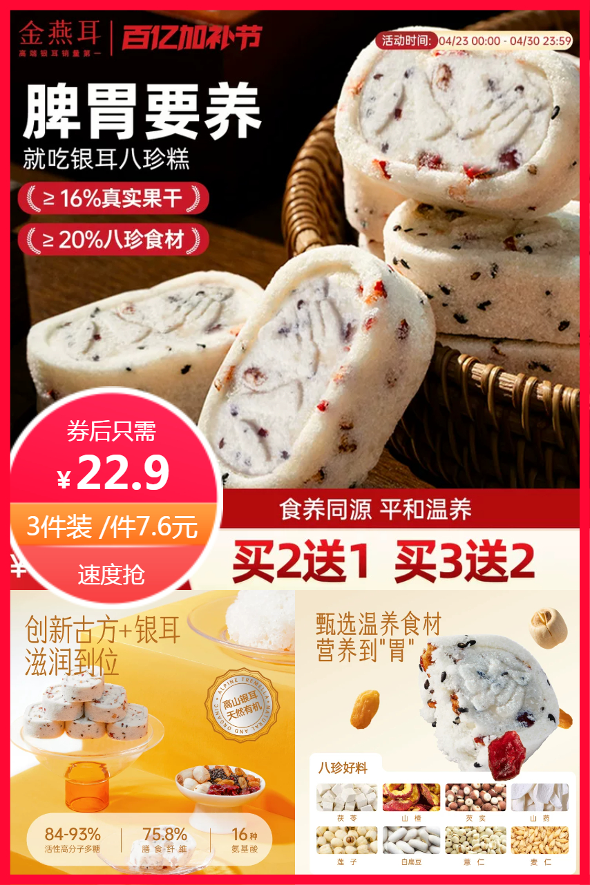 爆款营养糕点福利!新升级营养更丰富,金燕耳山药红枣八珍糕200g,芡实茯苓无糖营养零食早餐,甄选有营养胃食材,办公居家细腻软糯解馋解饿,独立包装解压健康营养糕点。