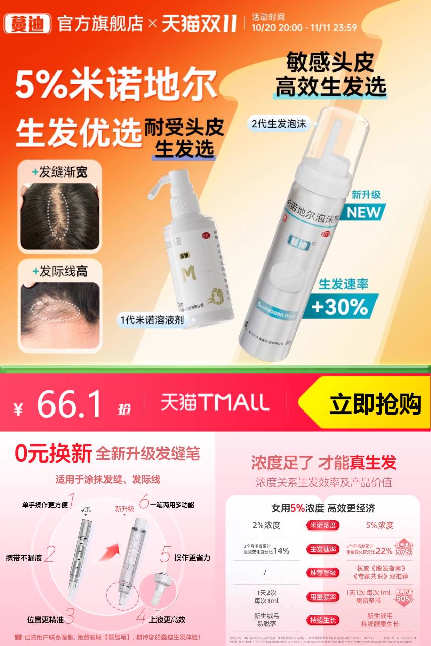 【1、金币抵扣2.61 2、叠加淘宝买药券9折,消费券后到手49.4】5%浓度真生发,浓密发缝神器,搭配发际线精灵瓶,使用更方便。