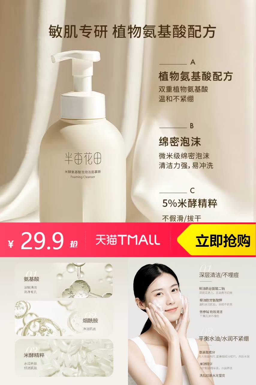 推荐:半亩花田氨基酸洁面慕斯300g*1瓶