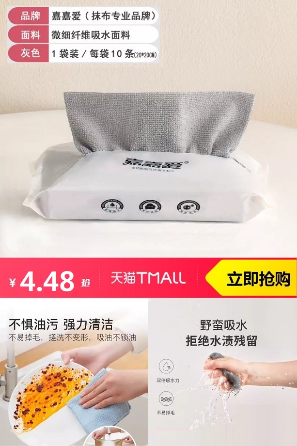 【立减1.32元,可撸首单+签到】干湿两用,可重复使用!抽取式设计,避免湿手撕扯抹布的尴尬!不易掉毛,搓洗不变形,吸油不锁油。可擦鞋、擦桌子、擦镜面等多场景使用