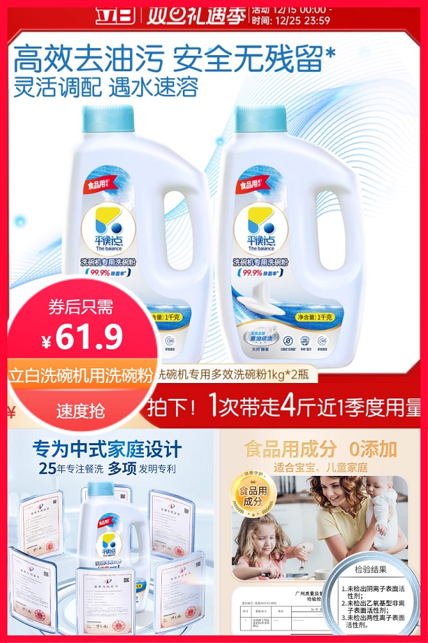 官方立减15元+券8元+点击右上角三个点进入淘金币抵扣4.84元+88vip省3.1元后约53.96元,消费券+限时红包3元更实惠,平衡点洗碗机专用洗碗粉,源自天然的洁净力,高效去油污餐具净无忧,安全无残留,孩子餐具放心洗,洗碗从此更安全