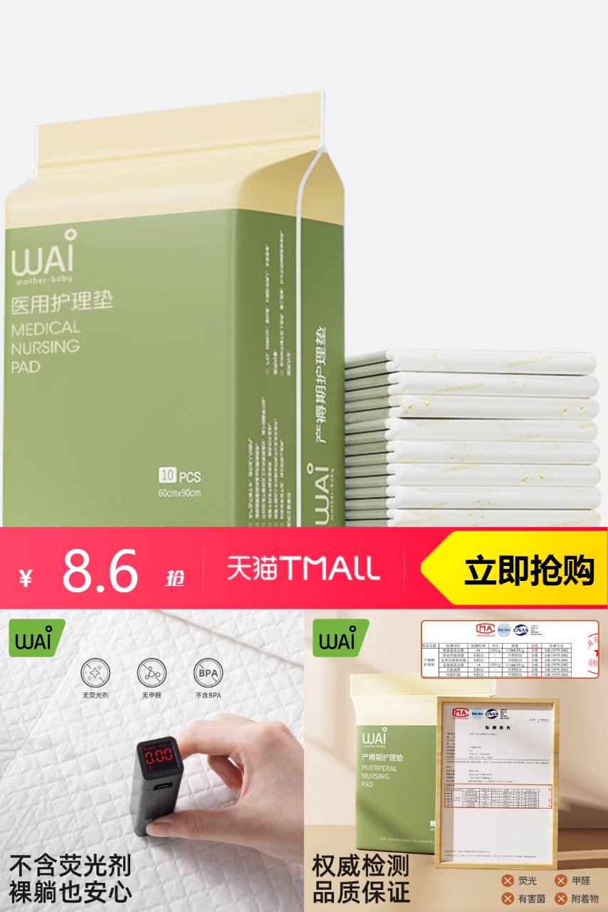【原价9.9-限时补贴1.3-淘金币0.88-双11超级红包抵扣0.31=到手7.41】产褥垫产后专用医用护理隔尿垫月经垫10片,绵柔亲肤,用心选材,创新四角定位,不打滑,不位移,怎么翻身都不怕,妈妈安睡无忧!