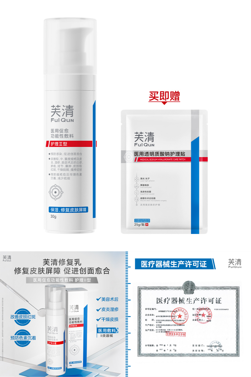 【下单送面膜一片】芙清抗菌修复乳液30g,II类医用敷料,修复皮肤屏障,促进创面愈合,核心芙清专利成分“十三肽”预防痤色素沉着、感染,减少疤痕,保湿,减少医美术后不良症状,修复皮肤屏障。