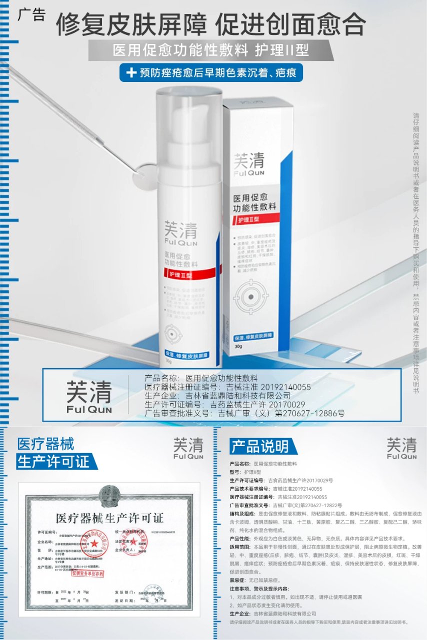 芙清抗菌修复乳液30g,II类医用敷料,修复皮肤屏障,促进创面愈合,核心芙清专利成分“十三肽”预防痤色素沉着、感染,减少疤痕,保湿,减少医美术后不良症状,修复皮肤屏障。