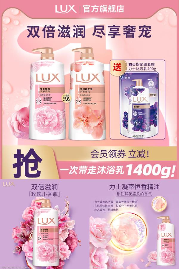 【券后29.9】双倍滋润精华肌肤尽享奢宠,力士娇肤香氛沐浴露,恒久嫩肤。力士香氛沐浴露萃取天然依兰精油在肌肤沐浴刹那恒香分子附着肌肤