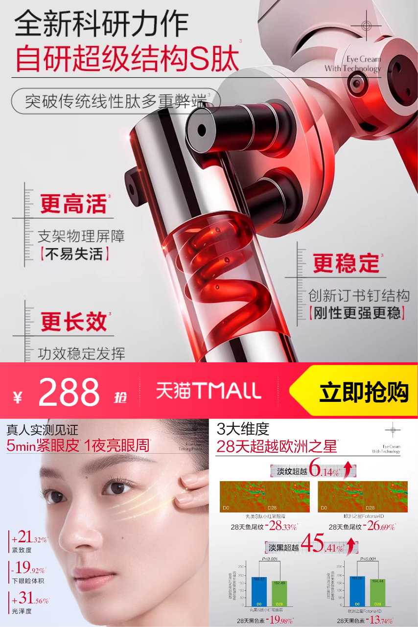 【30%,淘金币叠加7.5,消费券和惊喜券到手232.98,赠送同款30g+眼膜10片+杨紫限量小卡】累计爆卖50万+件,熊猫眼,泡泡眼,熬夜脸适用,超导震动鎏金按摩头,有效淡化熊猫眼,熬夜不显纹,胜肽含量1支顶3支!