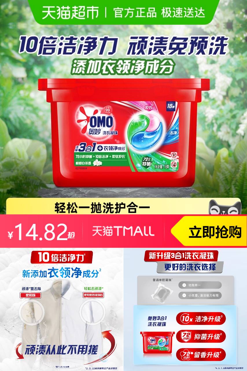 【叠加0.98淘金币到手14.82】奥妙桉树凝珠,轻松洗出清爽舒适。天然成分,呵护衣物,一盒在手,洗衣无忧。