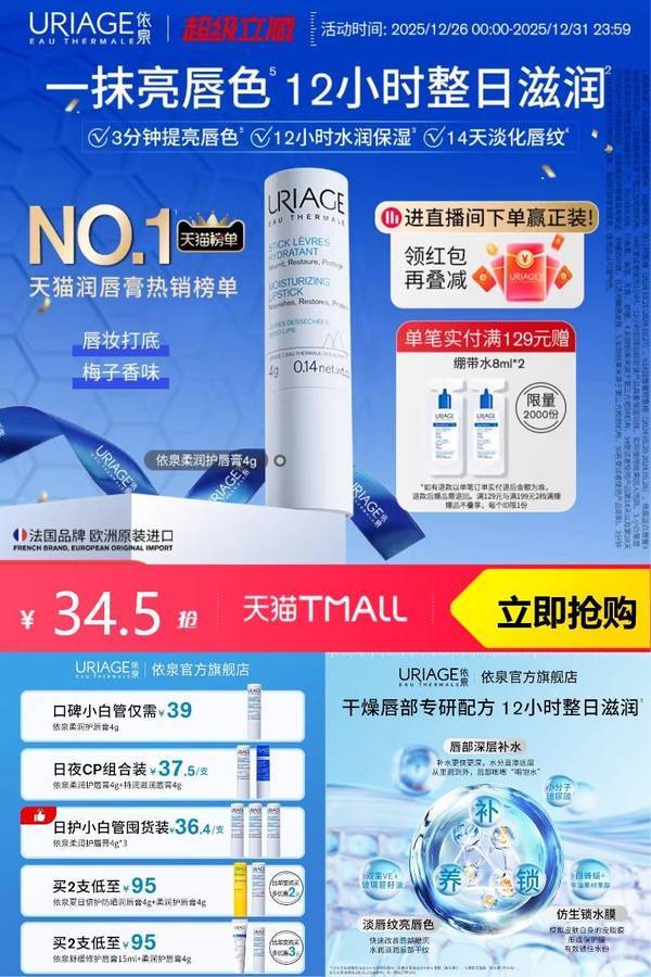 【淘金币足迹抵扣0.5元。可叠加消费券,到手30.2元。】喜欢唇膏的小伙伴不用犹豫!水润保湿日护夜养双管齐下,保湿淡唇纹,整日水润呵护,保湿柔嫩哑光不腻,夜间做唇膜,持水丰盈淡唇纹日夜稳护,倍享水润嘟嘟唇。