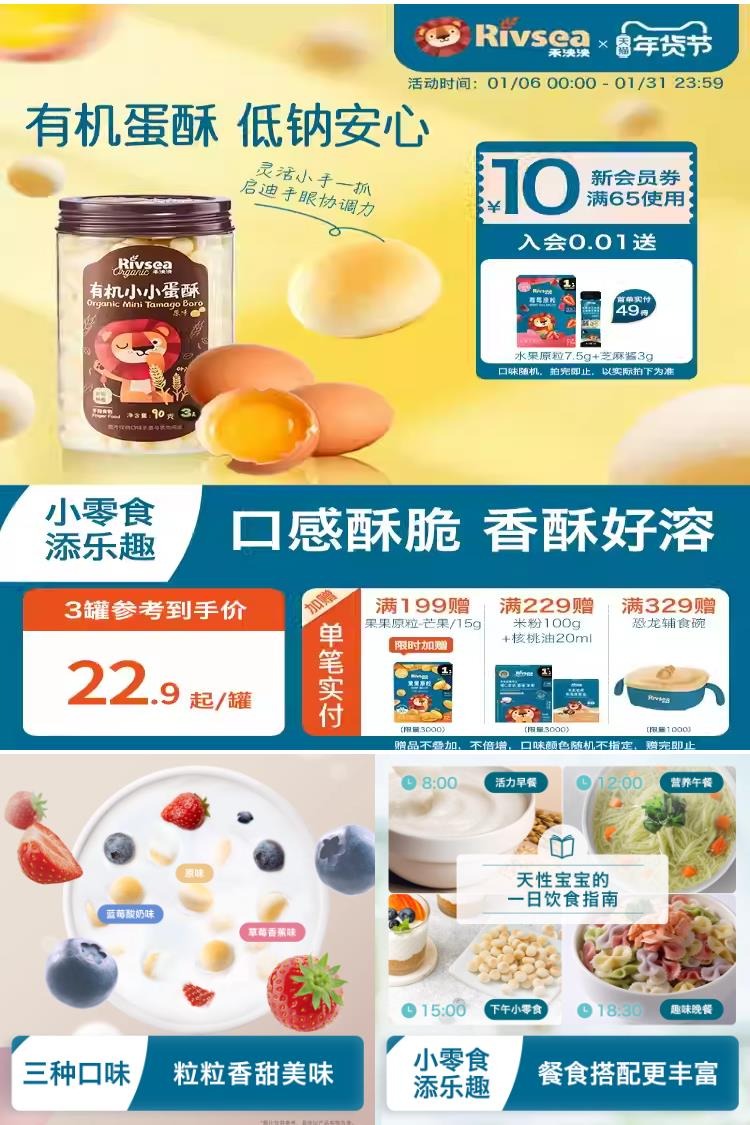 【官方85折叠加88vip三件到手仅56.53元】禾泱泱儿童饼干宝宝零食,小小蛋酥90g,香酥美味,甄选食材简单配方,全链有机种植,坚持无多余添加,宝宝嘴馋时刻来几粒。