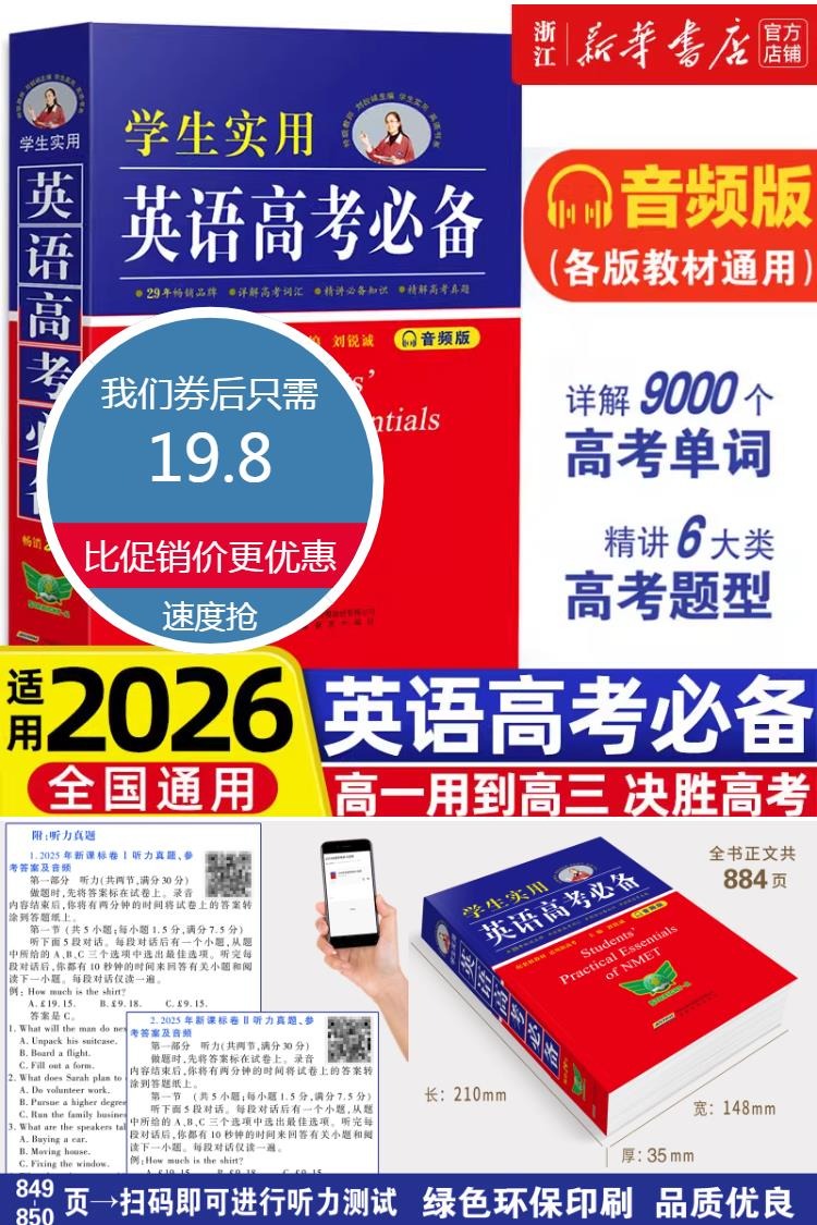 【音频版】2026新版英语高考必备,讲解9000个高考单词,精讲6大类高考题型,一词一音频,查阅方便!绿色环保印刷,品质优良,从高一用到高三,决胜高考英语!畅销28年教辅书王!