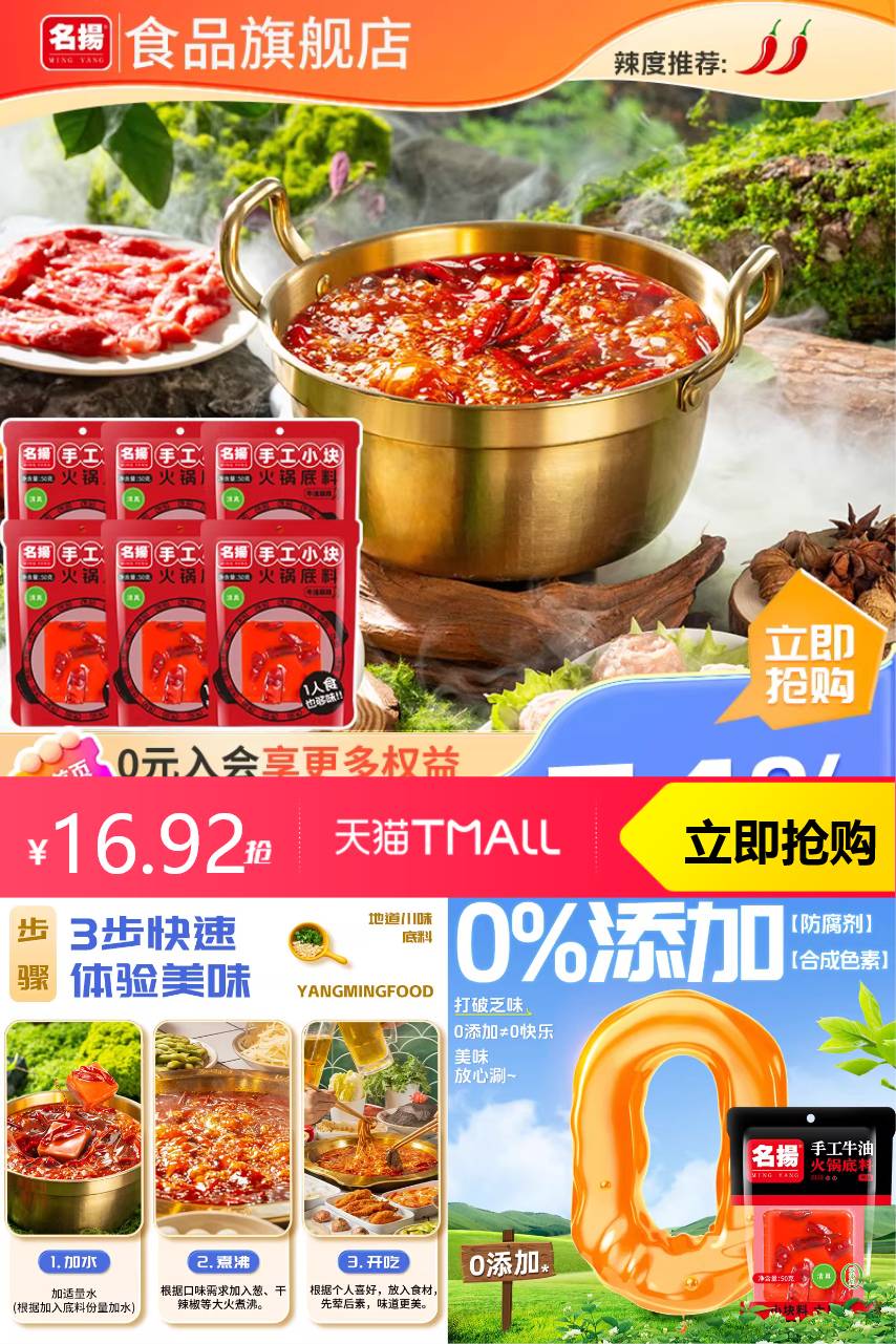 【下拉详情享专属优惠】 每一袋名扬牛油火锅底料,都蕴藏浓郁风味,带你品味川味独特魅力!