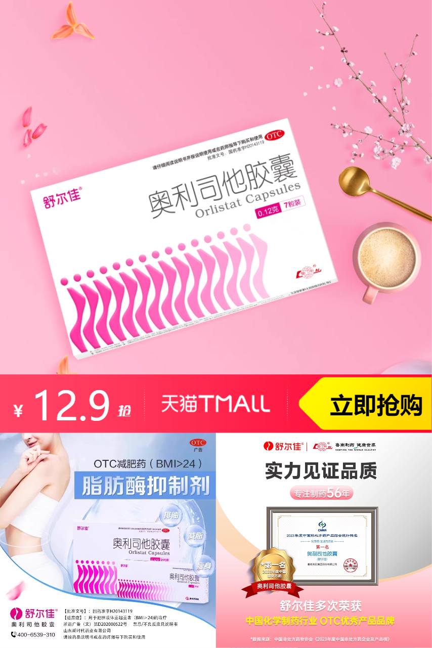 舒尔佳奥利司他胶囊7粒*1盒,国药准字OTC减肥产品,超重人群抗肥胖,管不住嘴姐妹福音,怕胖之选!排油减脂,随餐服用,轻松享瘦!