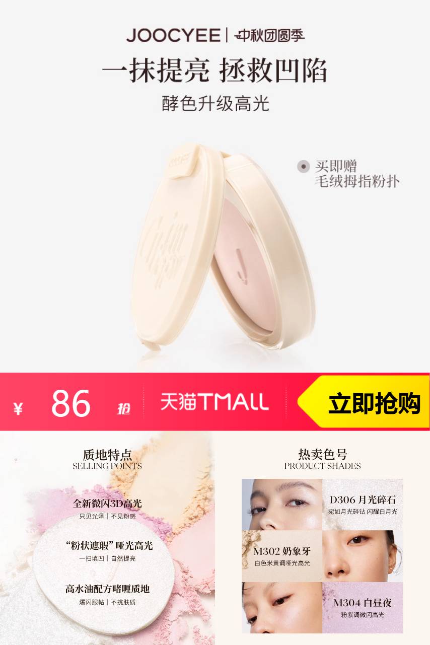 【拍2立减19元+叠加淘金币到手76元】【拍2】JOOCYEE酵色高光提亮哑光,粉状遮瑕,一扫填凹~