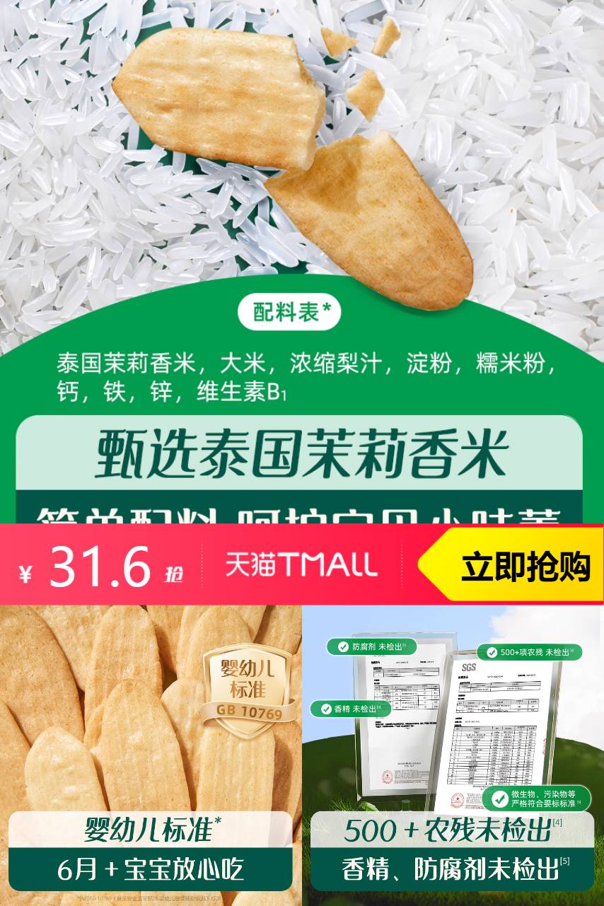 【拍2立减46+淘金币3.58到手28.02+叠加消费券到手更优惠】【拍2】英氏婴儿原味蔬菜味苹果味米饼宝宝,温和磨牙不做回水娃~