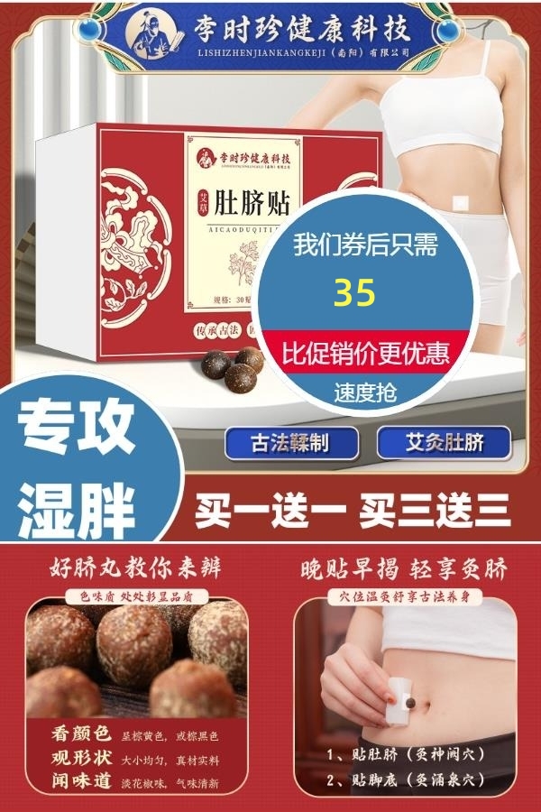 买一送一!到手2大盒【李时珍中药世家】十几种中药材熬制而成!专攻湿胖,体虚,肠胃不好和睡觉差的人群!每天一贴。让你拜托这些烦恼!速撸