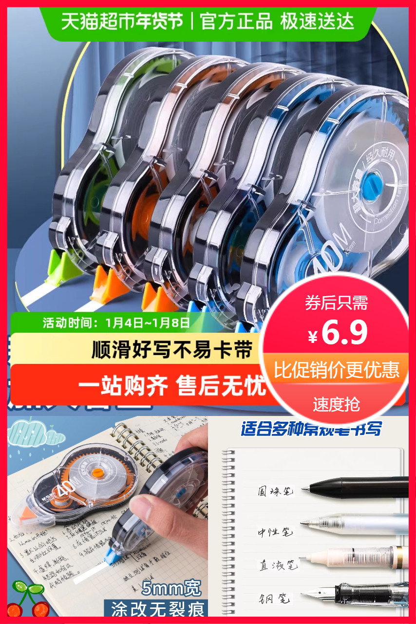 晨光酷黑炫彩透明修正带,超大容量,轻松遮住小错误,顺畅耐用,修复如新,复印无痕,造型小巧,遮盖力强!想改就改,满足日常修正所需!收纳方便不占空间!