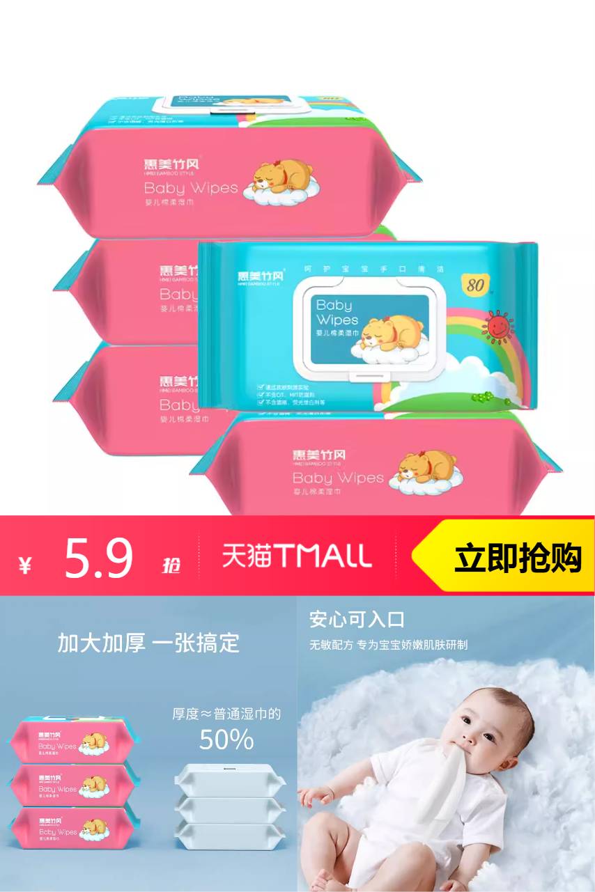 【天降补贴2,到手3.9元】使用这款湿巾,你会感受到它带来的清新与舒适。它不仅让宝宝感到舒适,也让家长们更加安心。每一次的擦拭都是一次呵护,每一次的体验都是一次信任的积累。