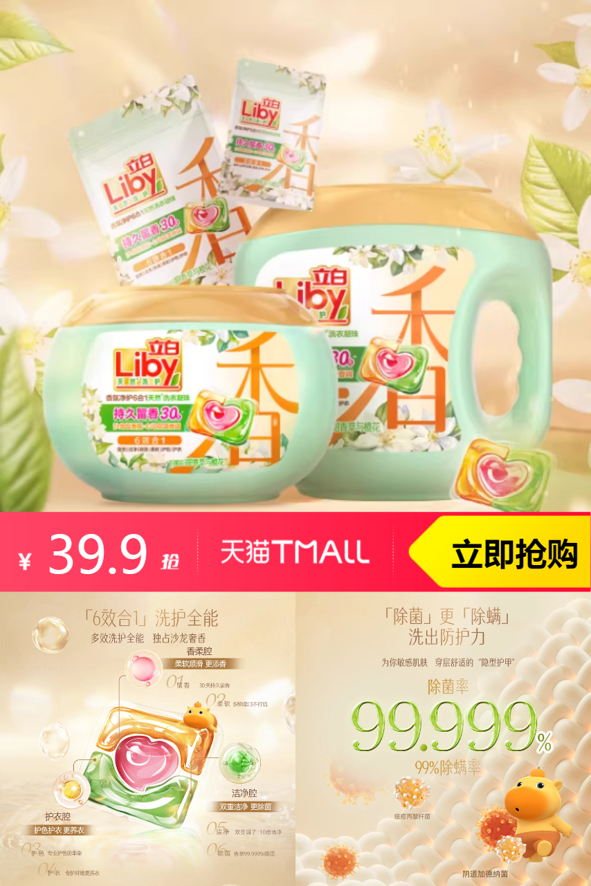 【1、拍就送卫仕液100g*1袋 2、淘金币抵扣3.75 3、叠加88vip 抵扣2块 4、回购礼金3块 5、淘礼金抵扣1块 5、消费券后26】立白沙龙香氛洗衣凝珠香水留香除菌除螨,天然成分,呵护衣物,更护手!高效洁净,一洗即新,效果显著!多重功效,一次解决,省心省力!