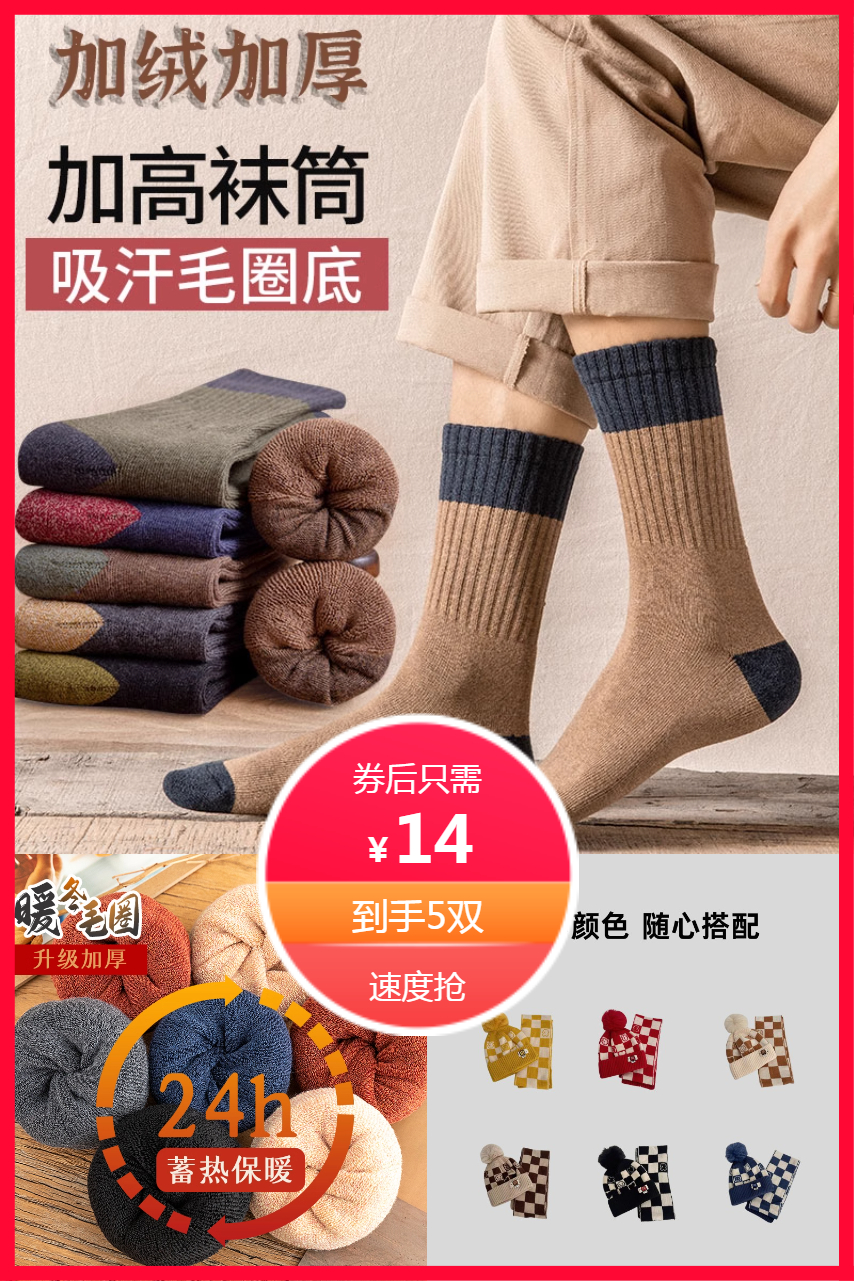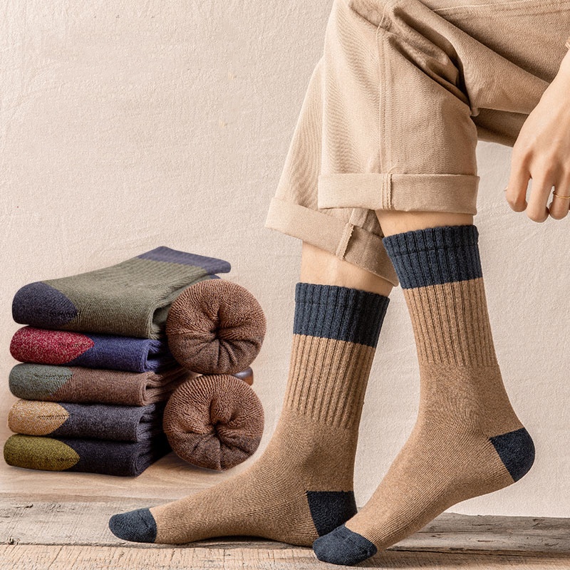 ⭕5双!冬季新款男女中筒加绒加厚毛圈袜