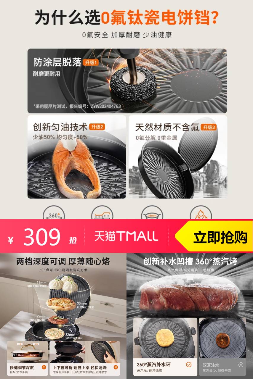 ⭕九阳0氟钛瓷电饼铛双面加热新款家用煎饼锅