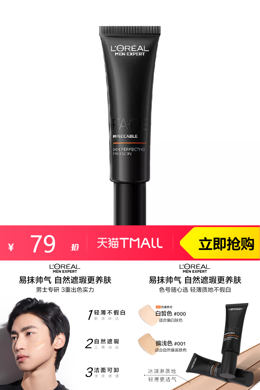 【凑单到手64】男士专用素颜霜修颜小黑管遮瑕膏!男士专属的化妆品~修饰均匀肤色,不闷肤,不卡粉!美白且养肤,直接嫩成豆腐脸!