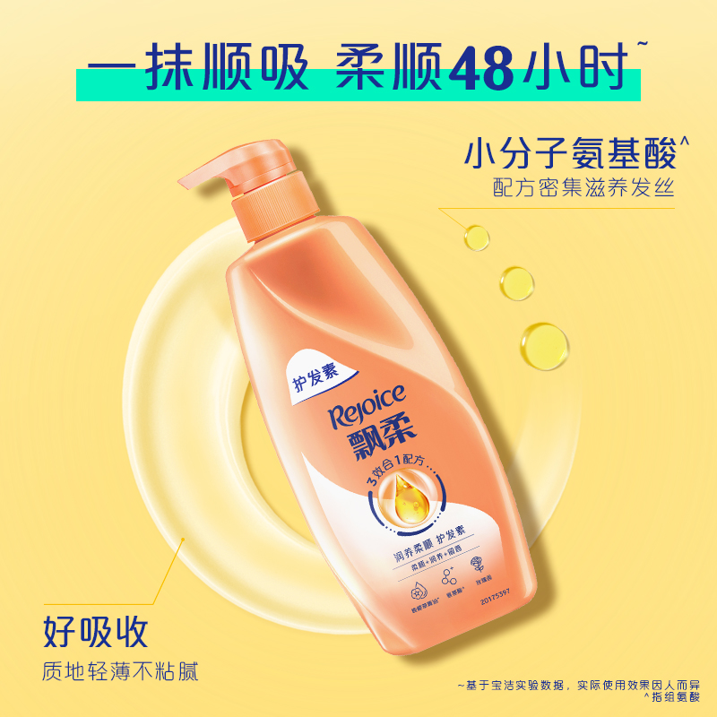 独特柔顺配方,轻松抚平毛躁,让你的发丝顺滑如丝,增强发丝光泽度,让你的秀发焕发自然光彩。