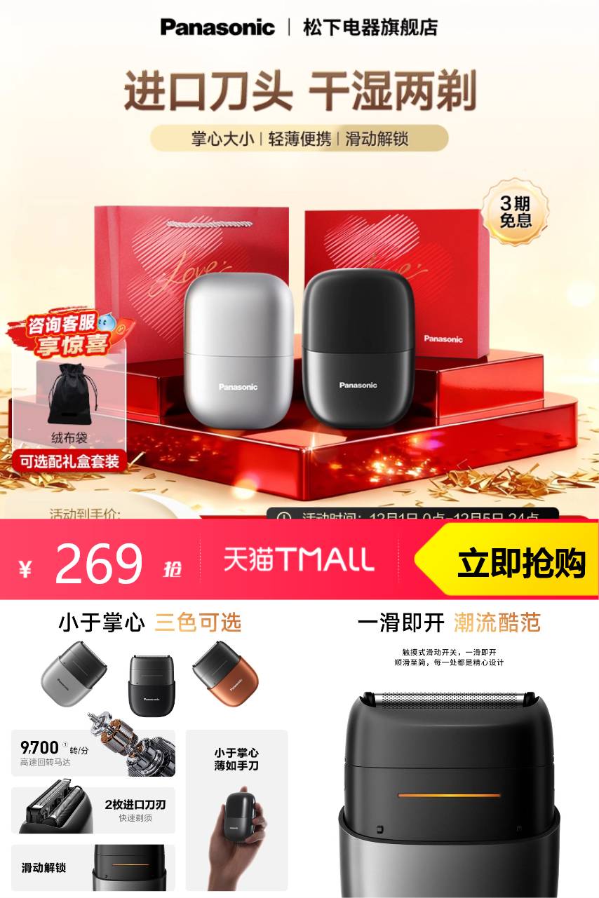 【原价699-立减400-优惠券30-金币28.98=240.02到手】精致男士必备神器!松下CM20电动剃须刀,小巧轻便,随身携带,随时随地轻松剃须