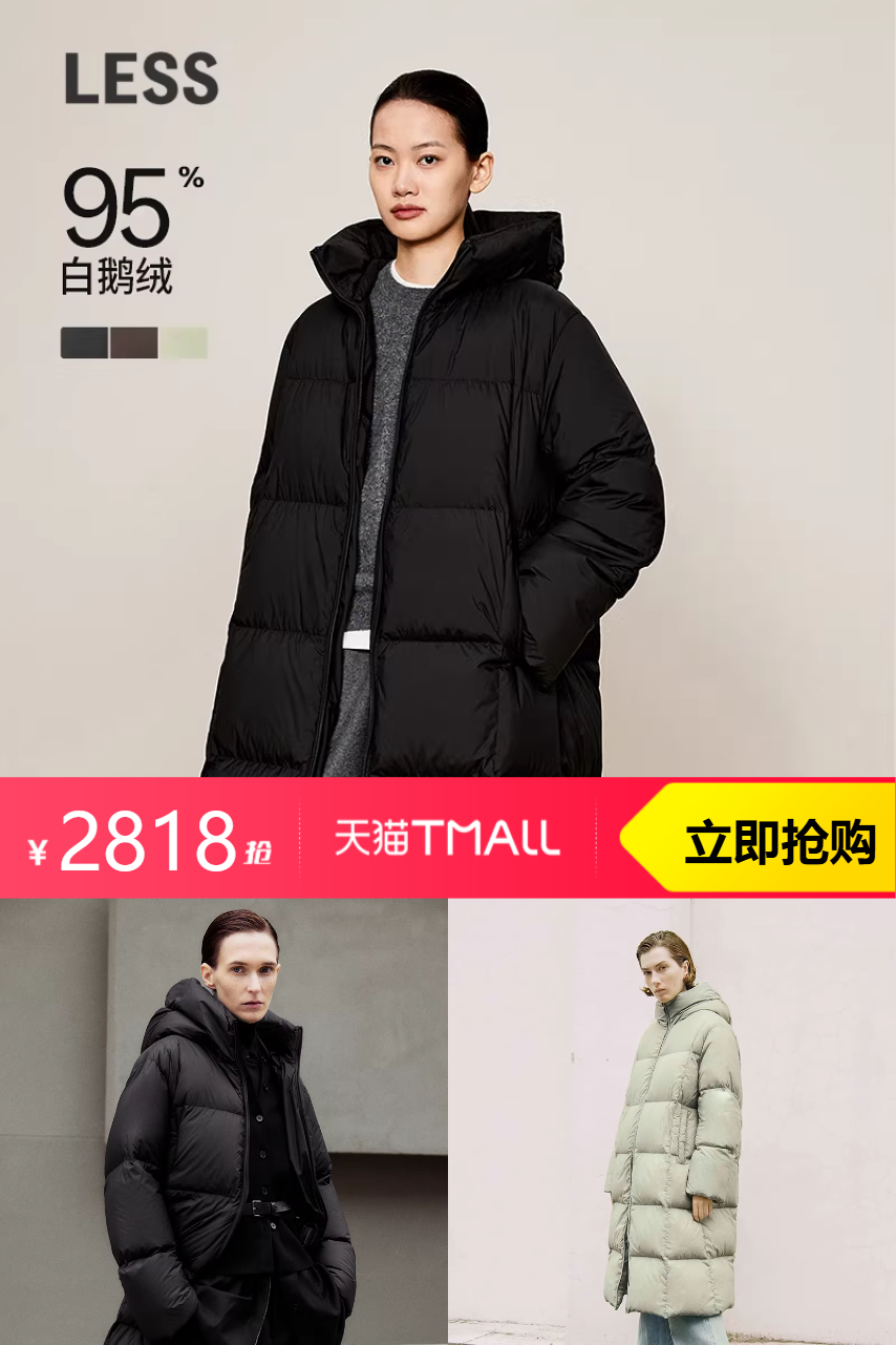 【10点有20%礼金抵扣199,叠消费券2000-200,淘金币抵扣84.54后到手1995.3】科鲁达白鹅绒LESS加厚长款连帽羽绒服,细腻的缝纫、舒适的拉链设计,每处都为你的舒适考虑。